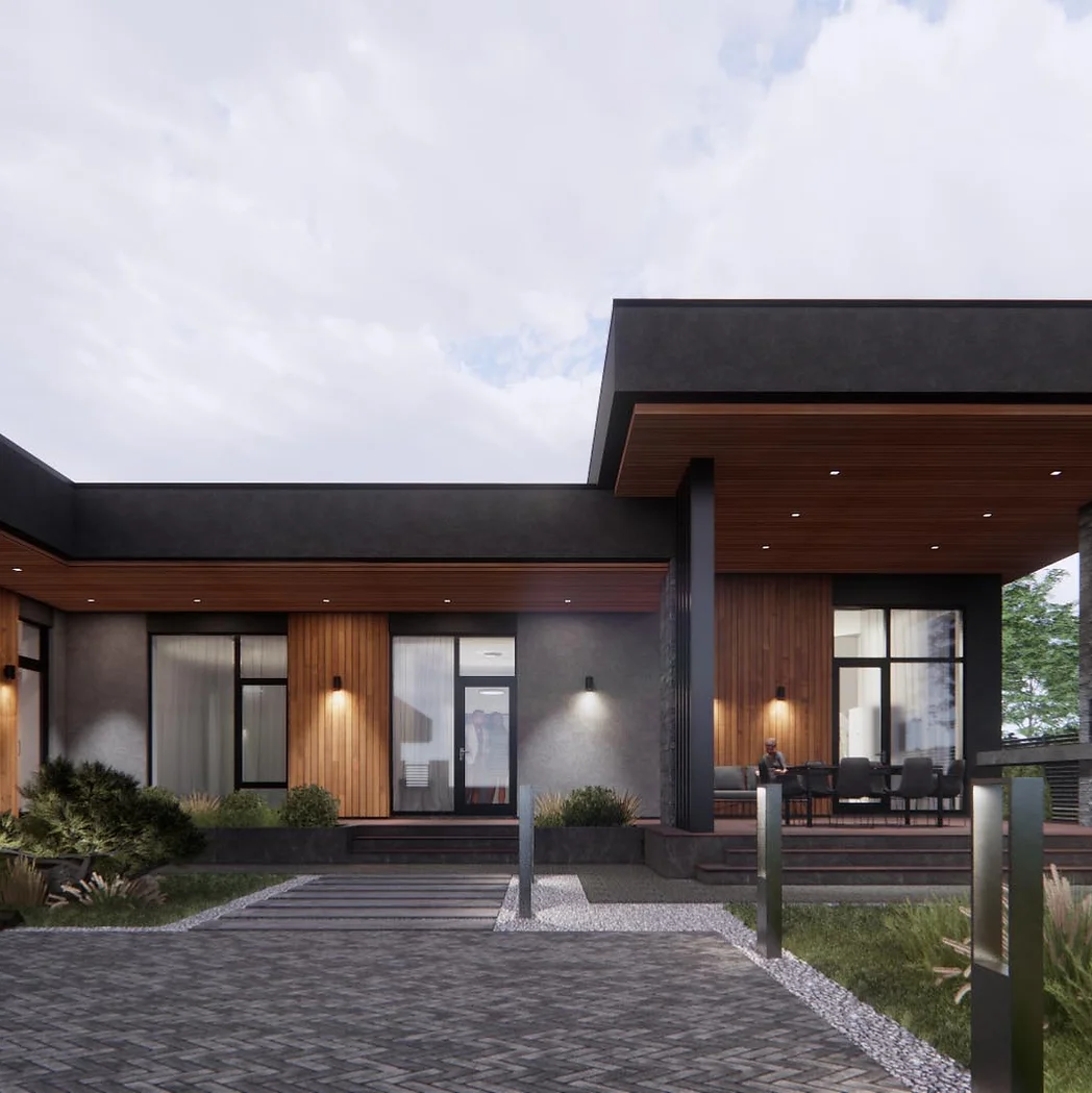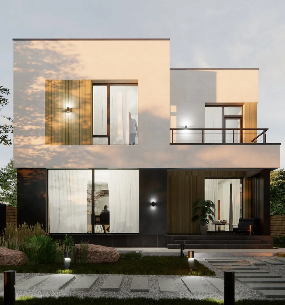 — внешним видом дома и гармоничными сочетаниями материалов отделки,