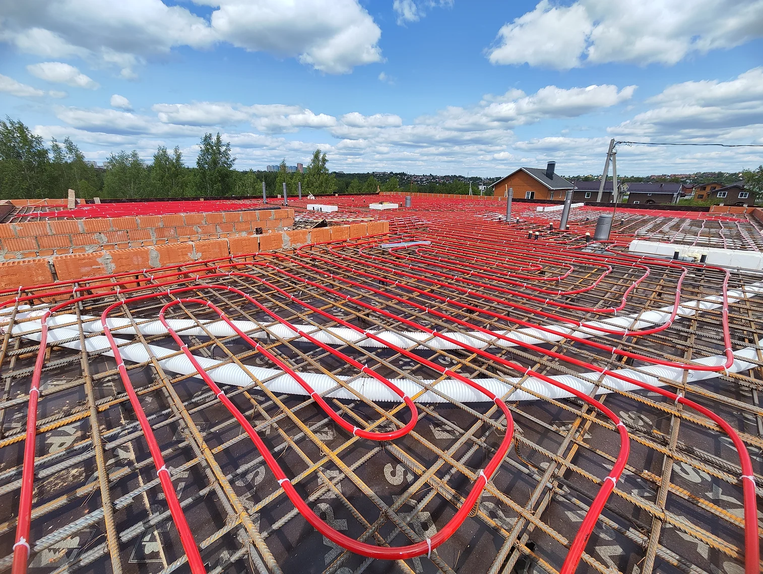 Монолитный плитный фундамент со встроенной системой теплого пола.