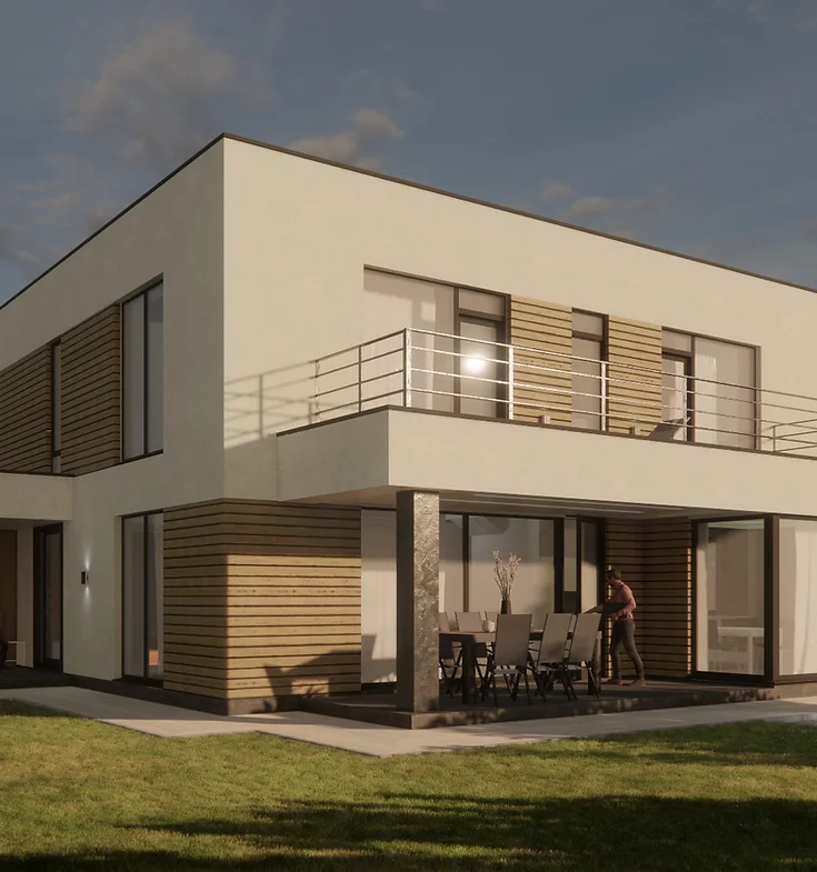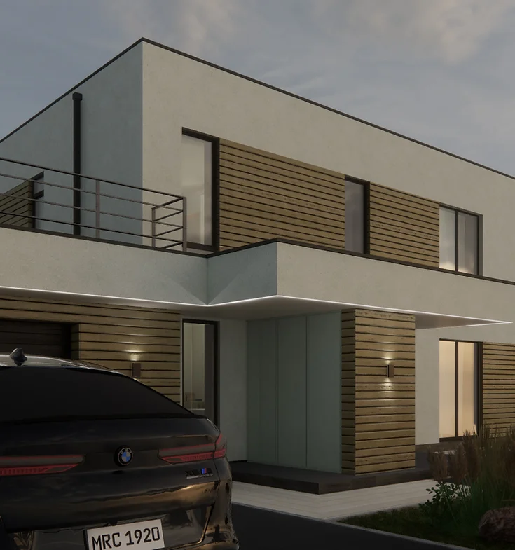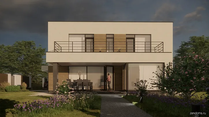 Проект дома 250 кв.м. с плоской кровлей и гаражом